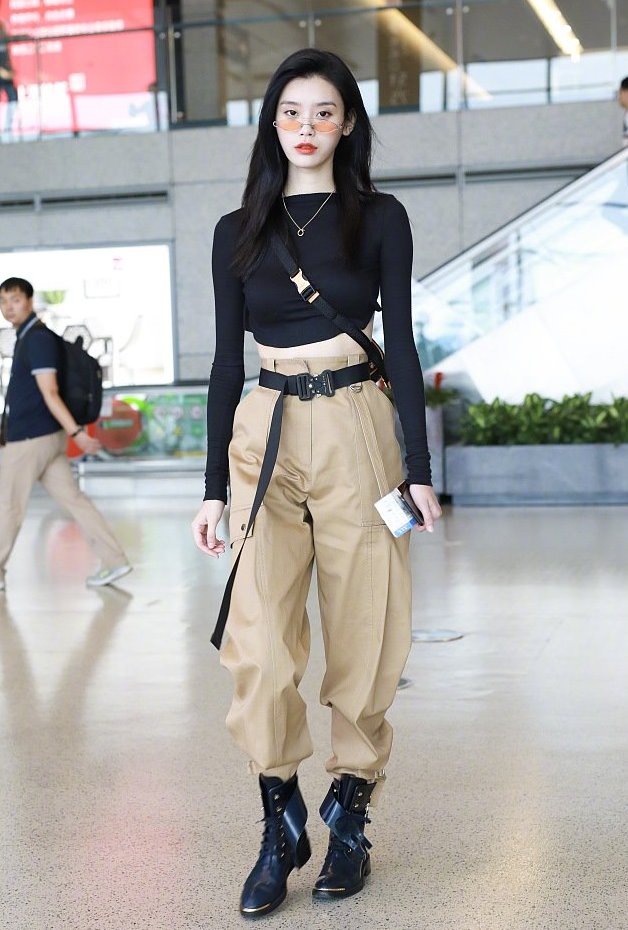 关晓彤穿工装裤配短靴好时髦,难得帅气一回,扎高马尾气场真强大