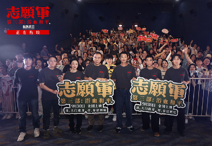 出品人、总制片人陈红也坦言《志愿军》三部曲已经像一颗种子一样在孩子们心中种下,抗美援朝战争打出了中国人70多年的底气,如今谁想欺负我们,都要先掂量掂量。还有观众对吴本正(朱亚文 饰)和张孝文(吴昊宸 饰)之间的故事“意难平”,当被问及吴本正会不会怀疑他找错人时,朱亚文解读道:“我愿意相信他就是那个我要找的张孝文。‘张孝文’这三个字对吴本正来说有太多对张孝恒的情感,吴本正答应过他,要找到他弟弟、要让他成为坦克手,这份承诺和嘱托是吴本正在战场上很大的念想。”路演现场,一位年仅三岁半的小朋友也来观看电影,并准备了和平鸽胸针送给主创,令所有人感动不已。先辈们视如生命的和平,在今天化为一枚精巧的胸针,稳稳落在所有人的心口之上,而志愿军的事迹与精神,也将永远被孩子们铭记、传承。