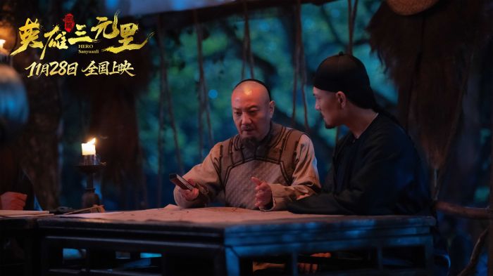 同步释出的“同心向志”版海报,以群像构图突出103乡百姓众志成城的抗敌决心。面对英军入侵,以举人何玉成(严屹宽饰)为核心的抗英志士们目光如炬,眼里的坚毅凝聚为不可抗拒的民族力量。英军在画面底部,于狭缝中行走,终究抵不过103乡百姓敢于血浴战场、严守家园的勇气!